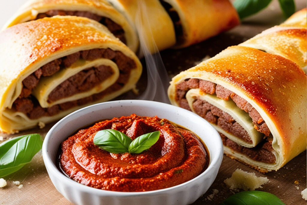 Meat Stromboli with Chili Pesto Dip